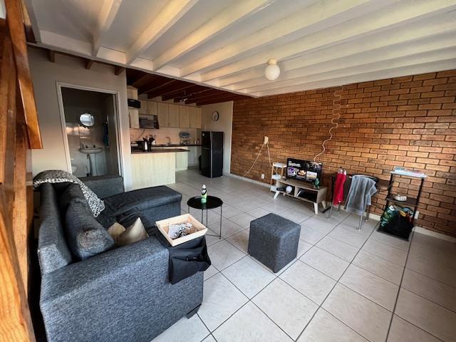Downstairs is an open plan living area to a fitted kitchen.