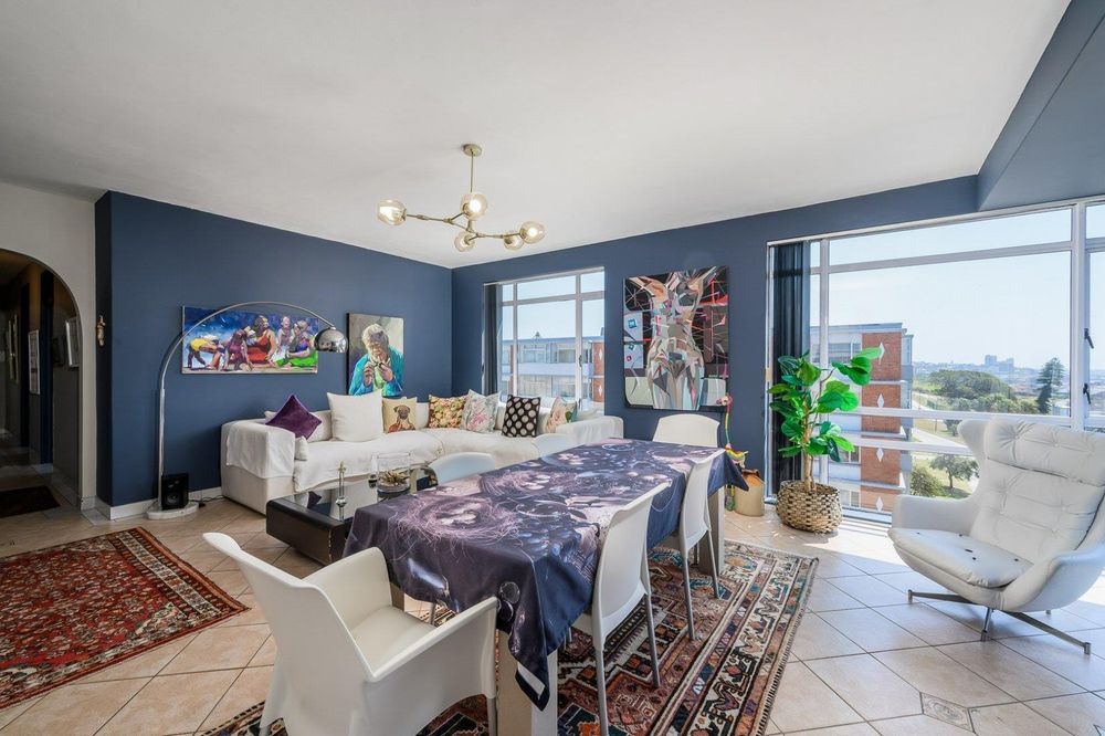 Large living room which houses a decent sized dining table and lounge area.
