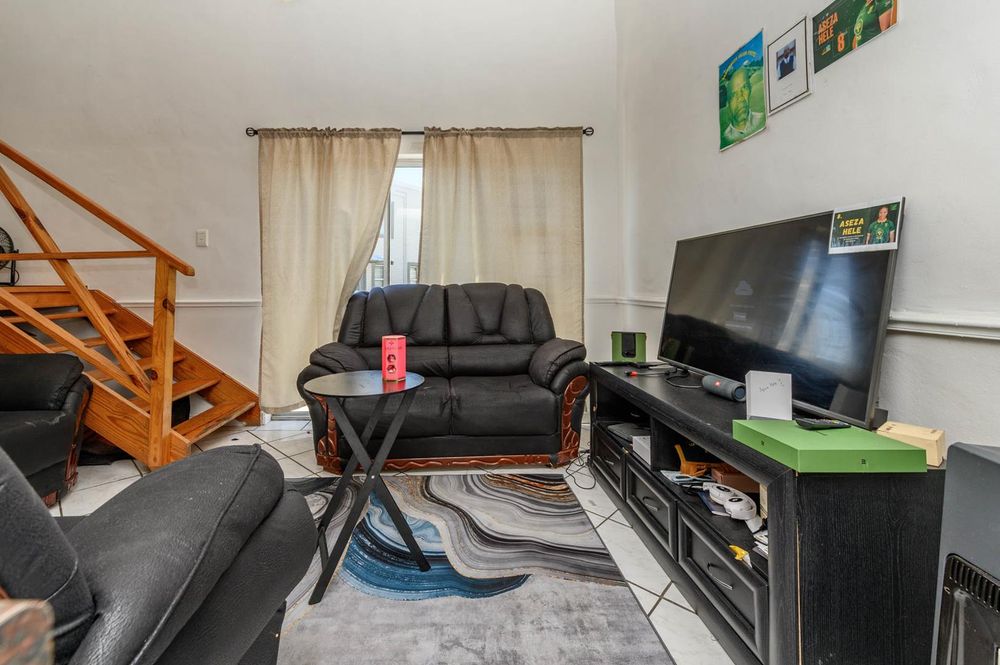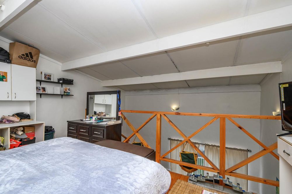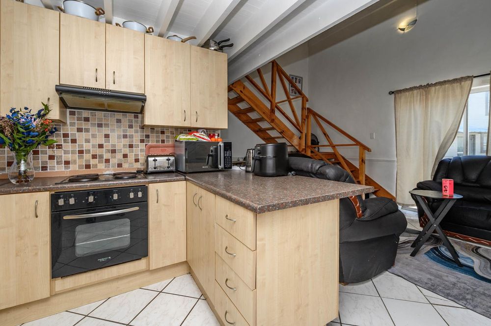 Open plan kitchen and lounge area leading through sliding door to a braai area. Spacious bedroom with built-in cupboards and a bathroom upstairs.