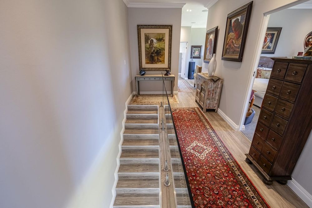 - Unwind in these stunning bedrooms, designed to provide the ultimate retreat with a focus on natural beauty and tranquillity. Extra-length windows frame unrestricted views, bringing the outdoors in and flooding the space with natural light. 3 of the bedrooms are situated on the upper-level, and the 4th bedroom is conveniently located on the 1st floor. All of the bedroom’s feature built in cupboards
