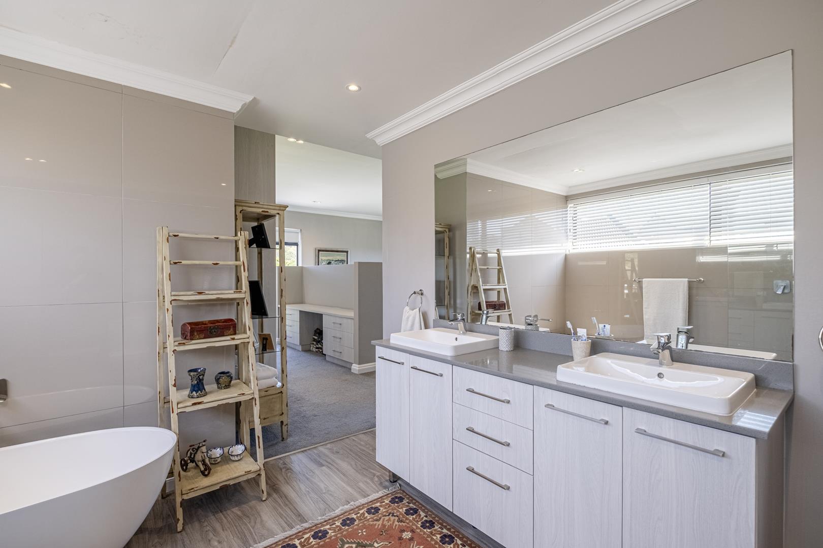 - The main bedroom features an elegant full bathroom with double basins, as well as a walk-in dressing room