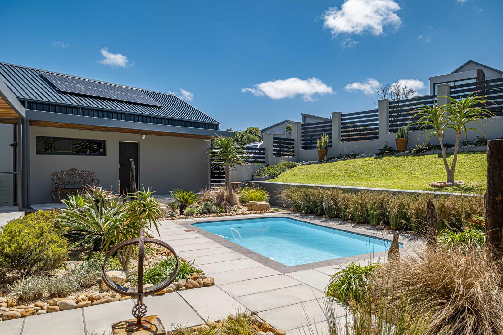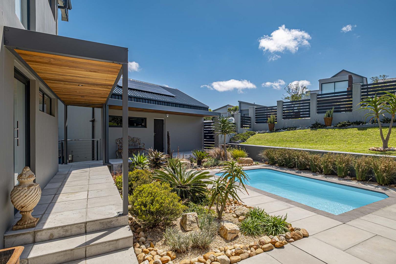 - Outdoor Entertainment Area: This stunning entertainment area is the perfect space to relax and entertain. With seamless access to the pool and landscaped garden. Enjoy the convenience of the undercover outdoor braai, or relax with family and friends around the fire pit
