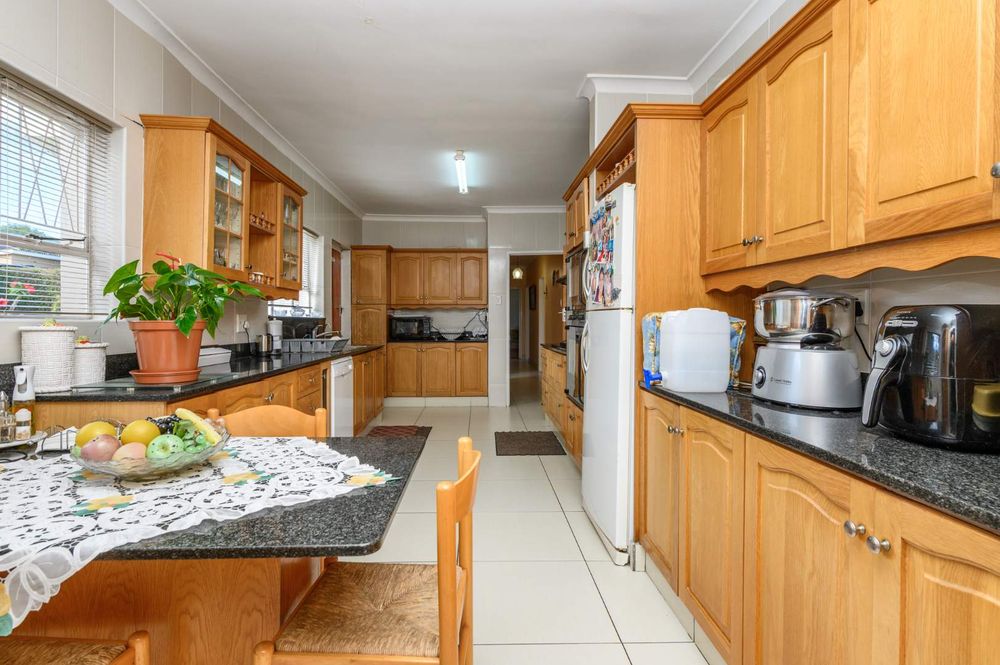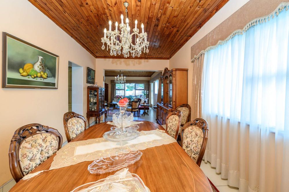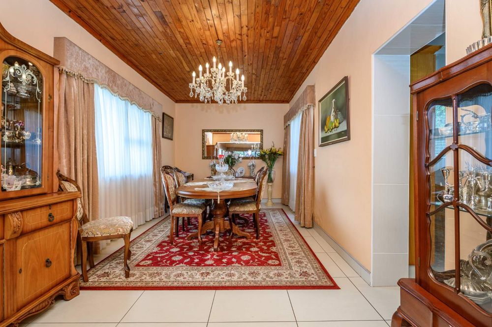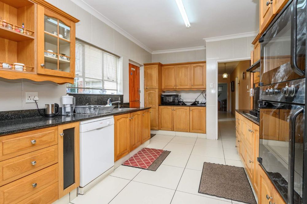 The home has a low maintenance garden with a beautiful layout as well as a large chip tile pool and braai area. Perfect for outdoor entertainment. A double garage as well as a carport provides safe and secure parking behind electric gates. A storeroom and servant's quarters add even more value. This home is perfect for a family and is situated close to all amenities, schools, etc, Priced to sell so act fast and call me for an exclusive viewing. Serious Buyers Only!