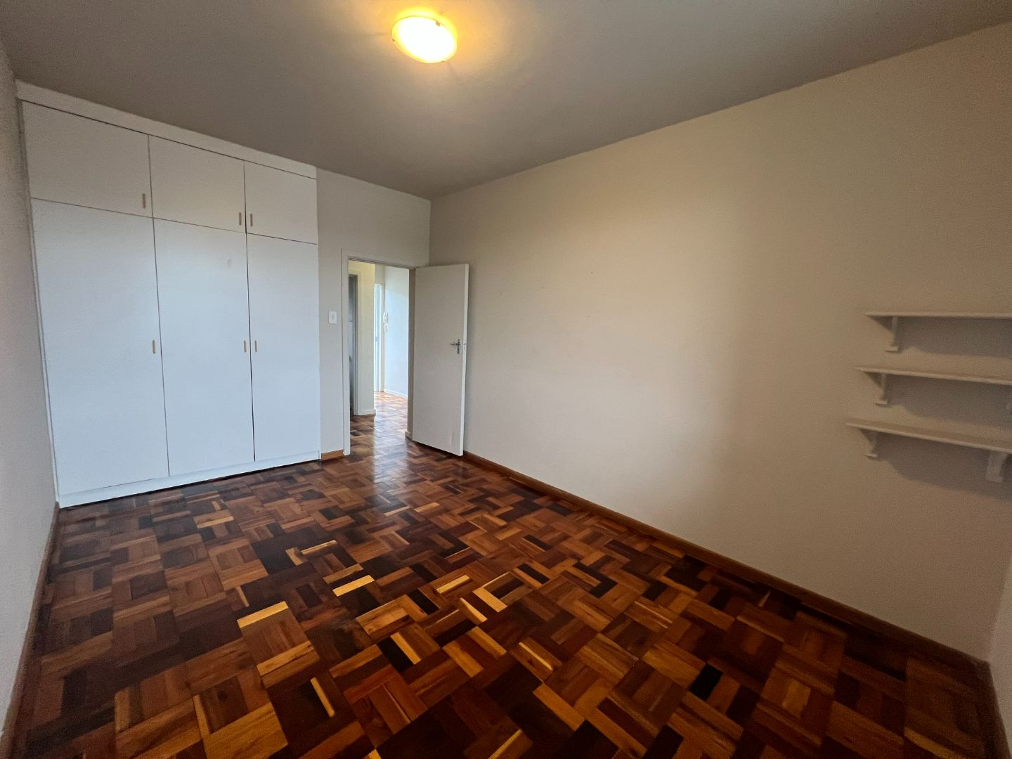 One large bedroom with built in cupboards.