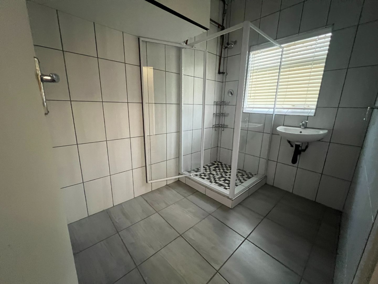Bathroom with shower and basin.
