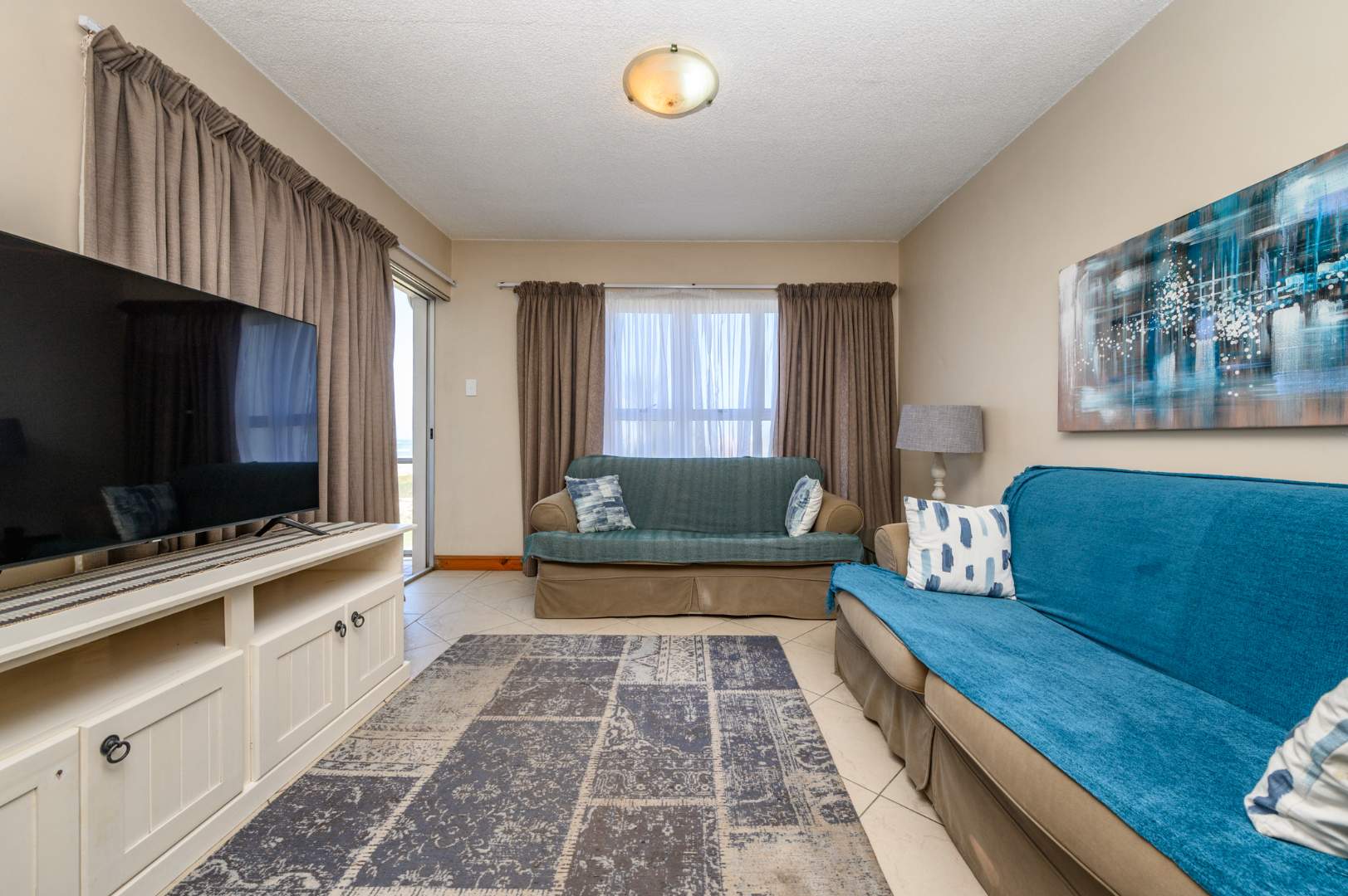 Exciting new release of our 2 bedroom sea facing apartment situated in an excellent location closest to our beach. What makes this apartment stand out? The excellent price and the exclusive parking included in the title deed! Upon entering you walk through a lovely sunny open plan modern kitchen plus lounge, dining area. Then through to bright main bedroom with built in cupboards and en-suite. The bedroom leads out onto an open balcony where you can enjoy beautiful sunsets over Pollock Beach or wake up to the tranquil sounds of waves all year around. Coastal living at its best! Down the hallway you find another cosy bedroom with built in cupboards and a 2nd bathroom. The apartment is neatly tiled throughout and both bedrooms are carpeted.