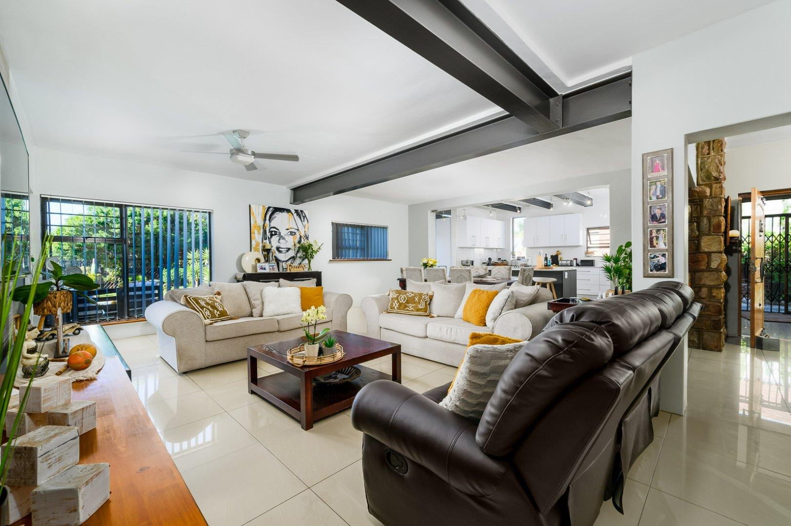 A large foyer welcomes you to this modern, practical home with fitted kitchen, scullery, huge indoor braai / entertainment area which leads out to the pool.