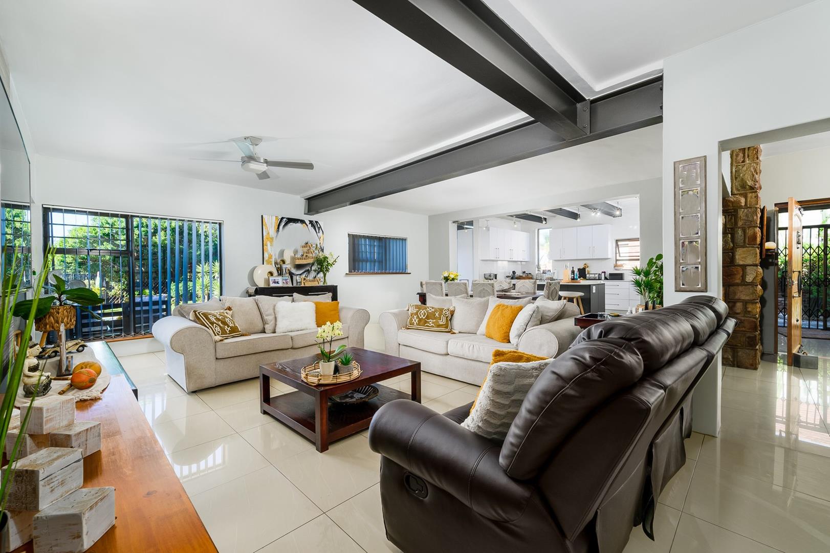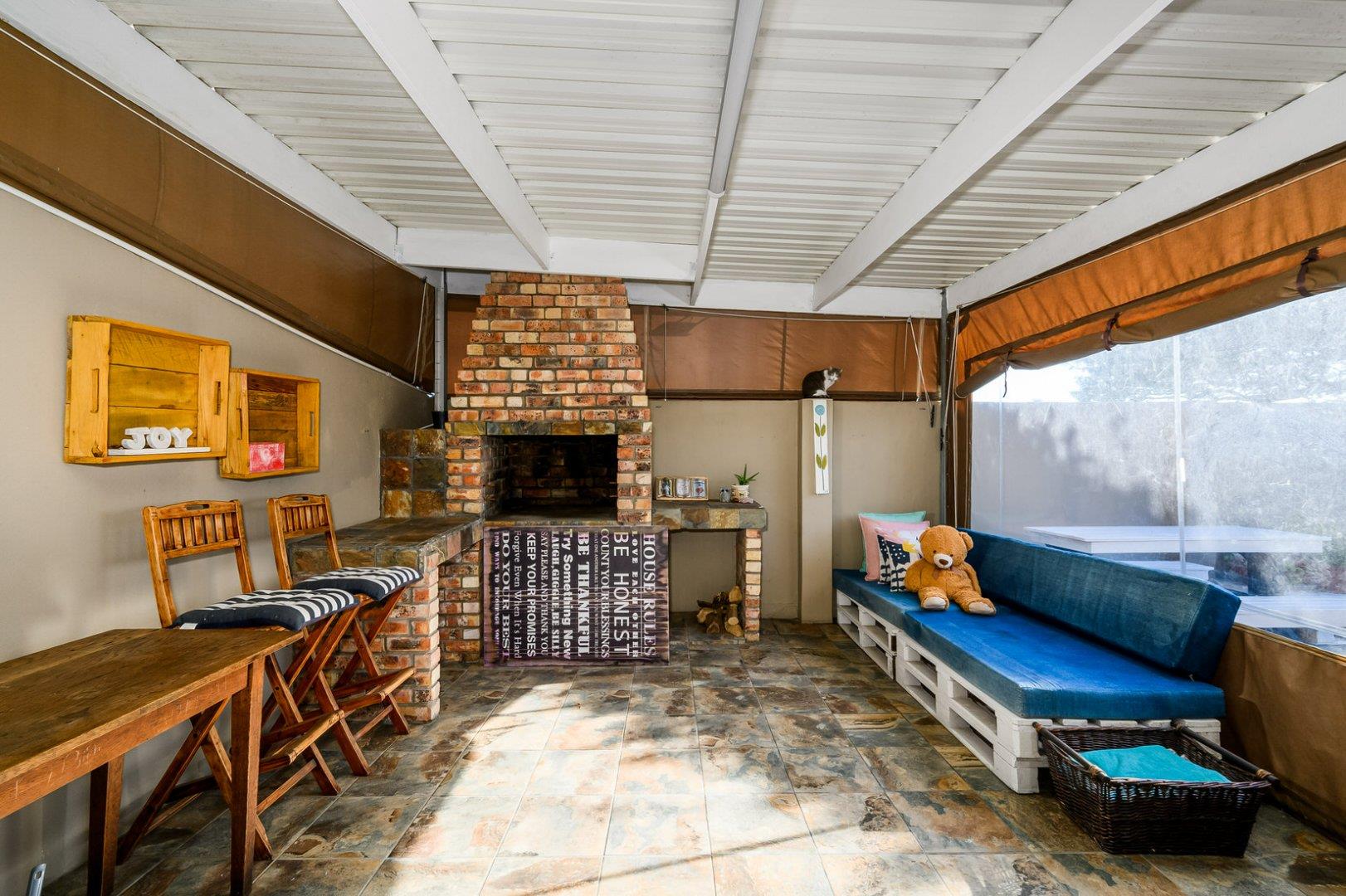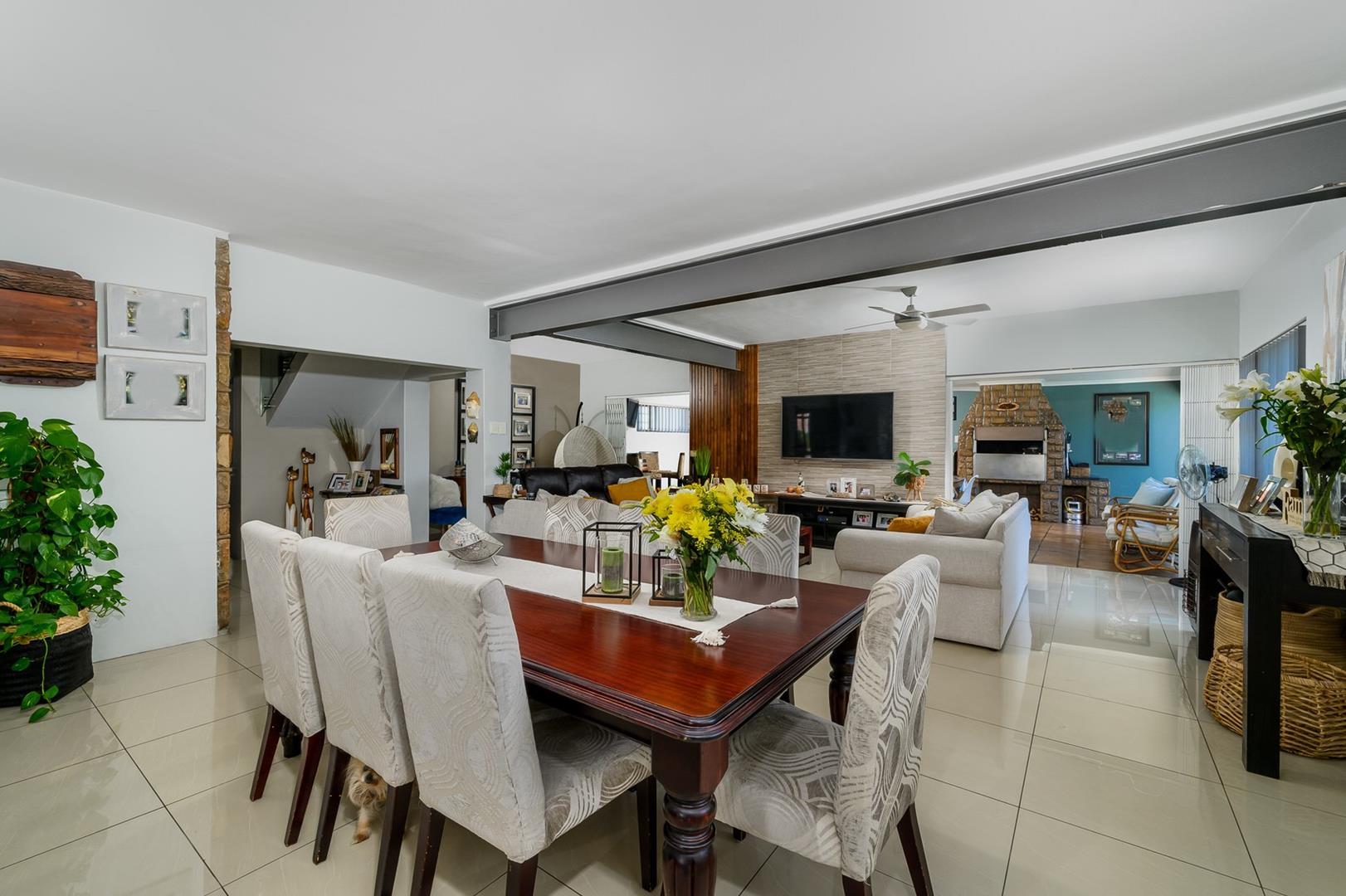 Large living areas with indoor braai and bar, leading out to huge pool.